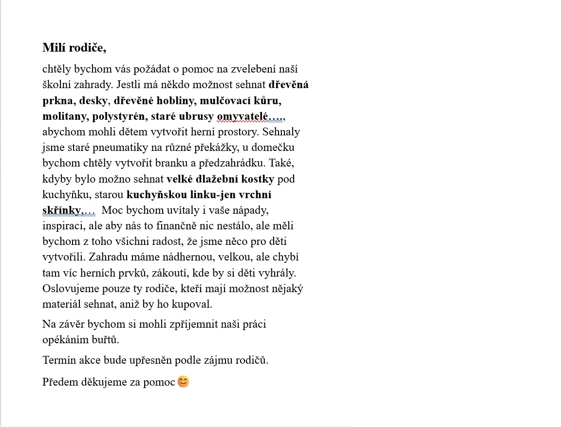 VÁŽENÍ RODIČE, VE SLOŽCE DOKUMENTY (výběr příspěvků) JE NOVÝ SOUBOR, TÝKAJÍCÍ SE ZMĚN, KTERÉ NASTANOU OD 1. 1. 2025. PROSÍME VÁS, ABYSTE SI TENTO DOKUMENT PŘEČETLI.